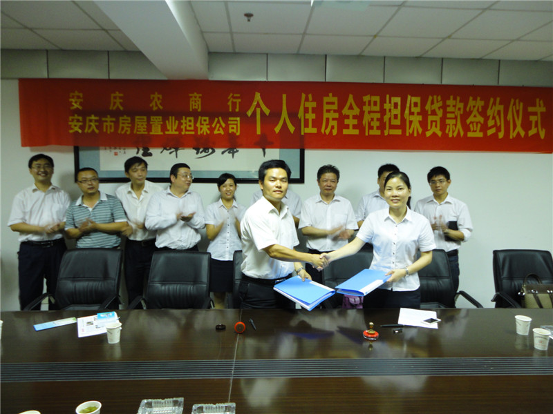 為促進安慶房地產(chǎn)市場健康平穩(wěn)發(fā)展,滿足我市居民居住性和改善性購房按揭貸款需求,安慶市房屋置業(yè)擔(dān)保公司不斷拓寬思路,創(chuàng)新業(yè)務(wù)品種,9月28日與安慶獨秀農(nóng)商行簽訂了《個人住房按揭全程擔(dān)保貸款合作協(xié)議》。安慶獨秀農(nóng)商行董事長韋道德、行長李春香,安慶市房屋置業(yè)擔(dān)保公司董事長、總經(jīng)理沈軍、監(jiān)事長、支部書記劉芳等合作雙方單位相關(guān)人員參加簽約儀式。