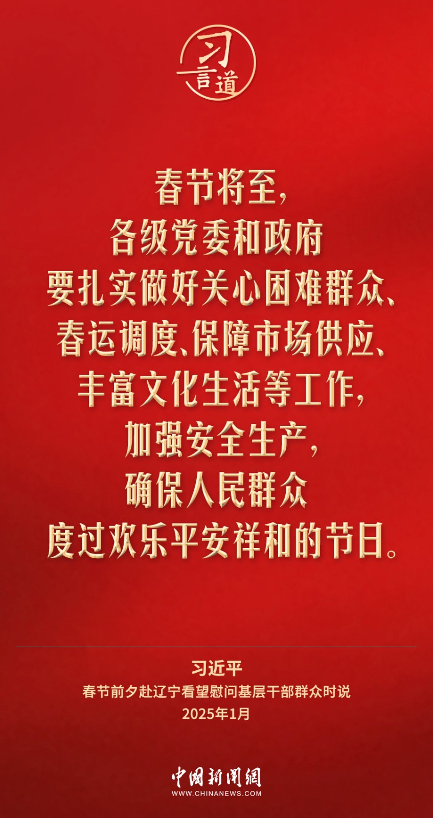 中華民族傳統(tǒng)節(jié)日春節(jié)即將到來之際,中共中央總書記、國家主席、中央軍委主席習(xí)近平冒著嚴(yán)寒來到遼寧,看望慰問基層干部群眾??疾熘?,習(xí)近平總書記指出——